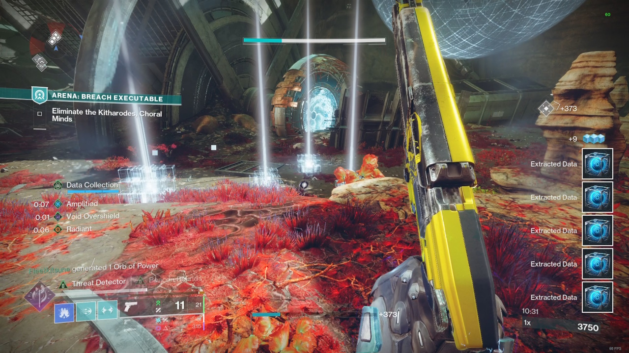 Для каждой задачи будут свои противники или цели, которые образуют «кубы извлечения данных», которые можно четко идентифицировать благодаря излучаемому белому свету. Как только вы получите эти кубы, «Индикатор выполнения сбора данных», расположенный в левой части экрана, начнет заполняться.