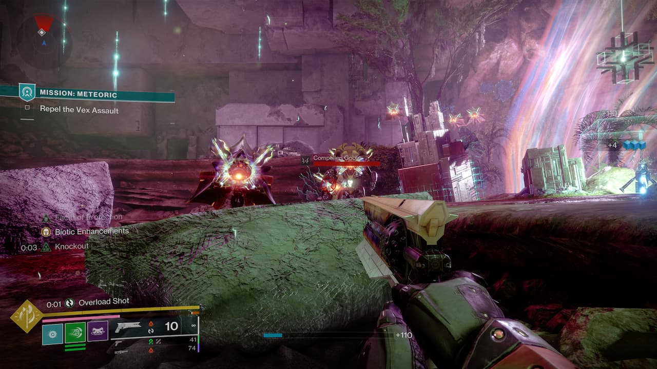 - Перенаправление сигнала вексов: Как и в «Миссии: Метеорик», вам нужно будет побеждать врагов вексов, чтобы они могли сбрасывать дуговые черепа. Используйте их, чтобы перенаправить сигнал вексов, стреляя по различным узлам, которые появятся на поле после победы над Стражами Конфлюкса.