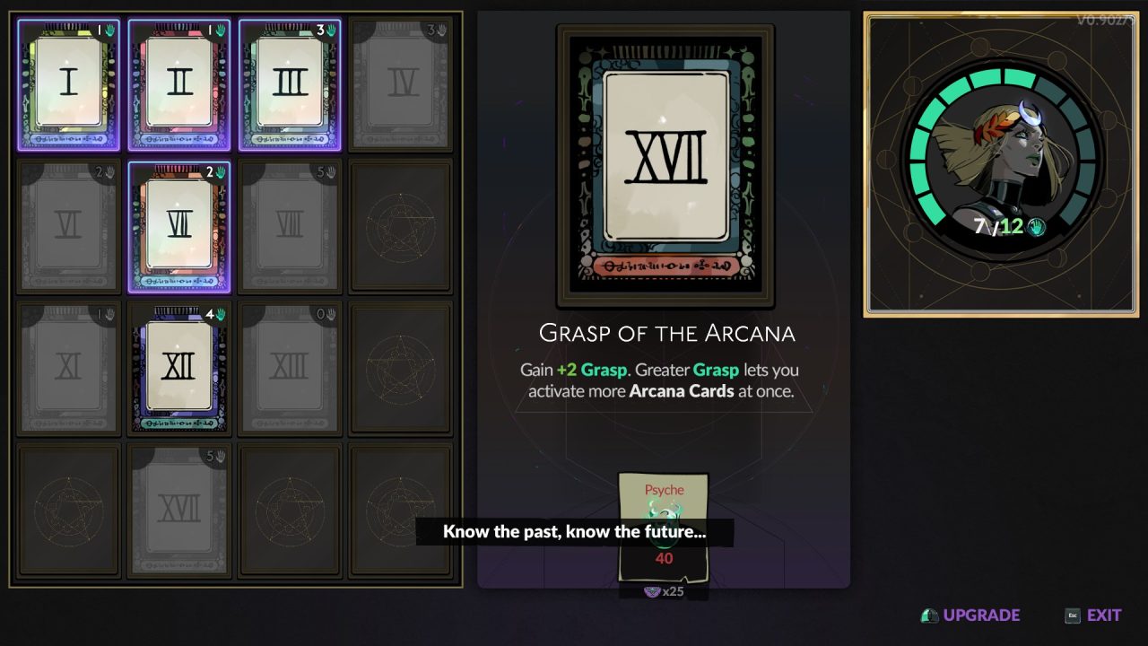 Как преданный поклонник Hades 2, я бы порекомендовал, как только вы накопите значительное количество Психеи, направьтесь в безмятежную зону для медитации, расположенную на перекрестке. Это спокойное место удобно расположено, когда вы входите в последний сектор, полный инструментов, сувениров и оружия. Здесь вы можете легко получить доступ к меню Arcana и проверить текущее количество захватов в Hades 2.