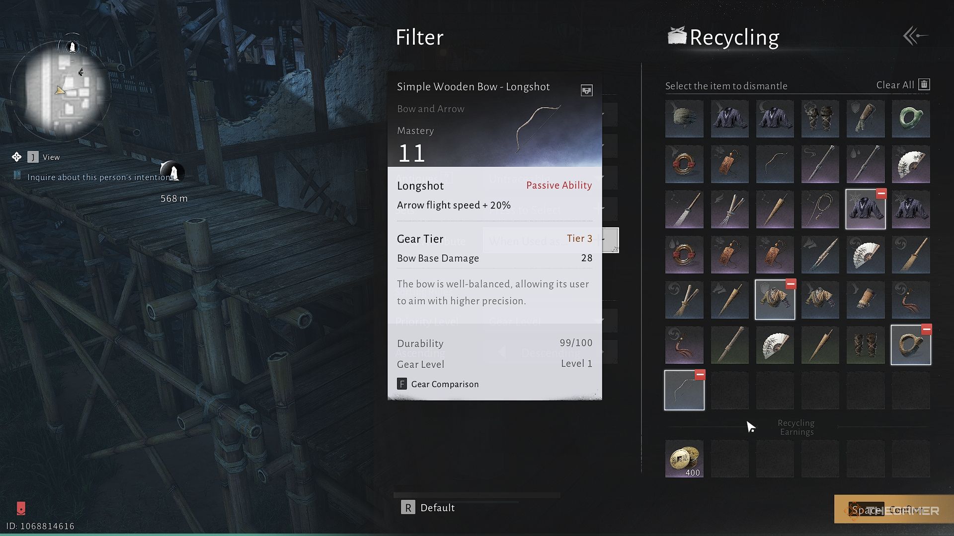 Чтобы переработать ненужные предметы, начните с открытия главного меню и выбора своей сумки. Затем перейдите на вкладку «Снаряжение» и выберите опцию «Переработка». Это откроет меню, где вы сможете использовать фильтры для удобной сортировки ваших предметов.