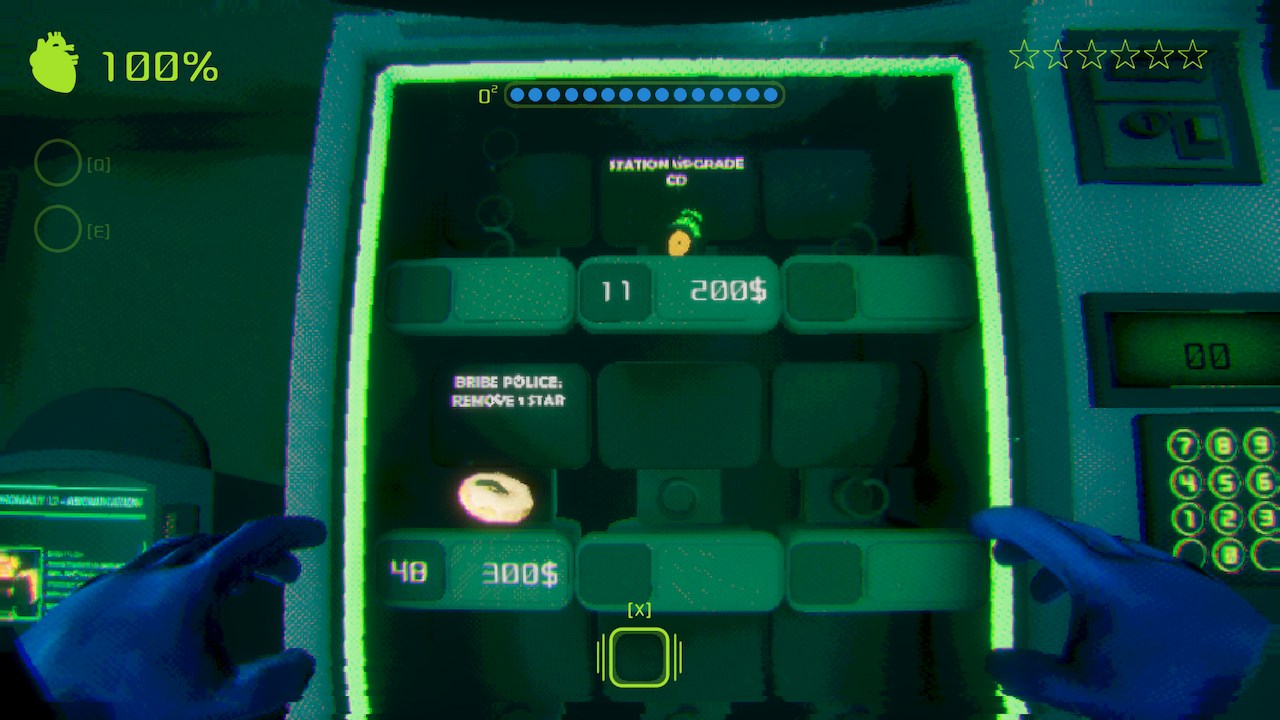 Две кнопки позволяют прокручивать вверх и вниз, открывая дополнительные элементы. Цена кнопки № 48 составляет 300 долларов, и она дает возможность подкупить полицию, что приведет к потере звезды. Из-за своей высокой стоимости эта функция может оказаться бесполезной, если вы почти не получили все шесть звезд.