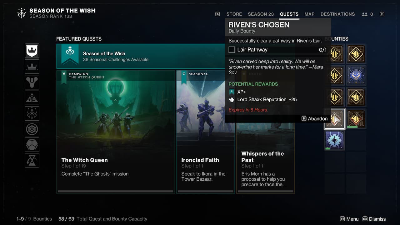 Вы можете задаться вопросом: «Разве мы не должны были создать проходы через Логово Ривен во время Сезона Желаний?» Действительно, мы это сделали! Логово Ривен — лишь одно из многих дополнений, добавленных в 23-м сезоне. Причина этого напоминания заключается в том, что один из ежедневных контрактов лорда Шакса под названием «Избранные Ривен» в новом социальном пространстве «В Свет» попросит вас очистить проход в Логове Ривен.