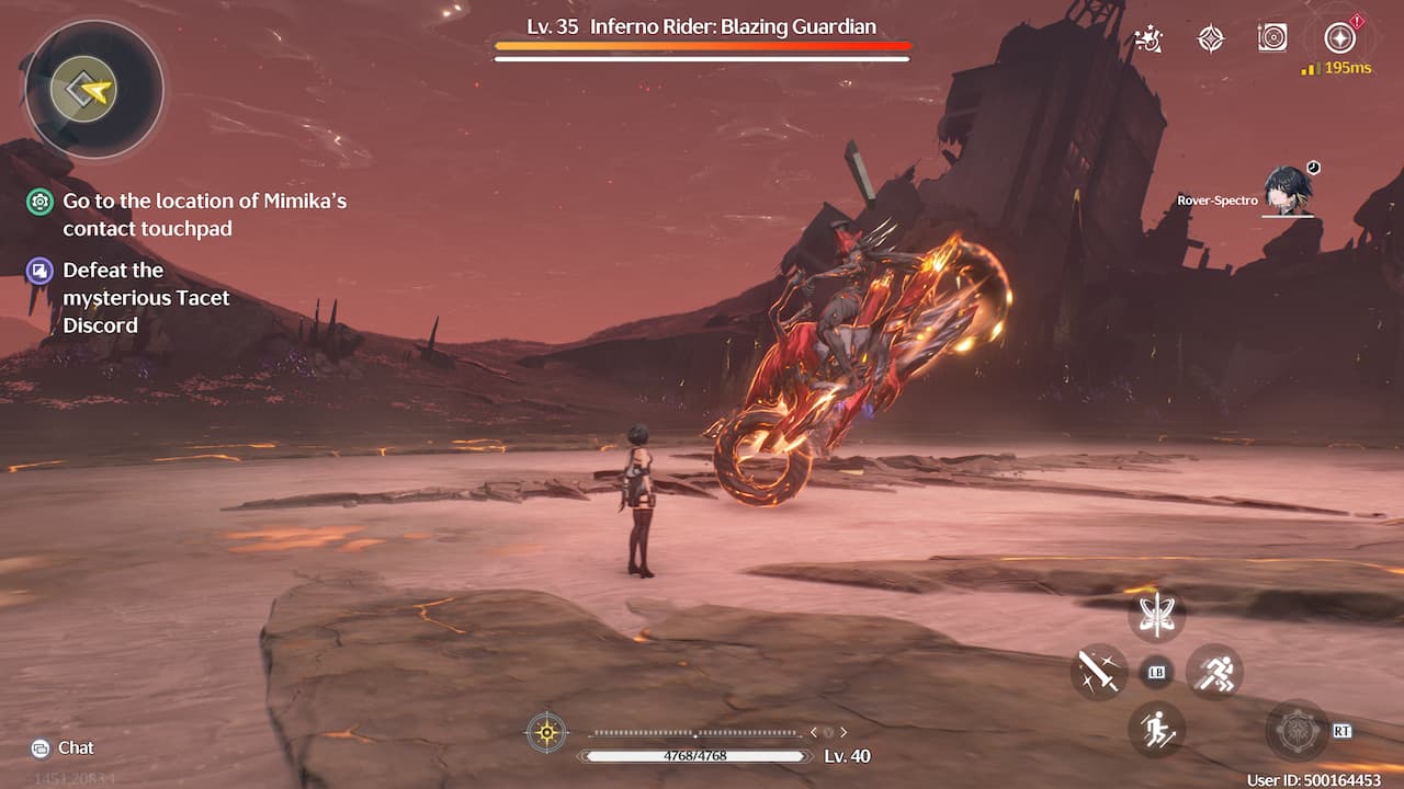 Впереди сбалансированная битва, приготовьтесь противостоять Адскому Всаднику в полную силу. Подумайте о том, чтобы поднять своих персонажей до 30-го уровня, поскольку Адский Всадник — грозный противник 35-го уровня. Умело уклоняйтесь от его атак и используйте свои Резонансные способности, навыки вступления и завершения, а также способности исцеления из резонатора поддержки. Не забывайте быть осторожными во время его сцен на мотоцикле, поскольку он движется быстро.