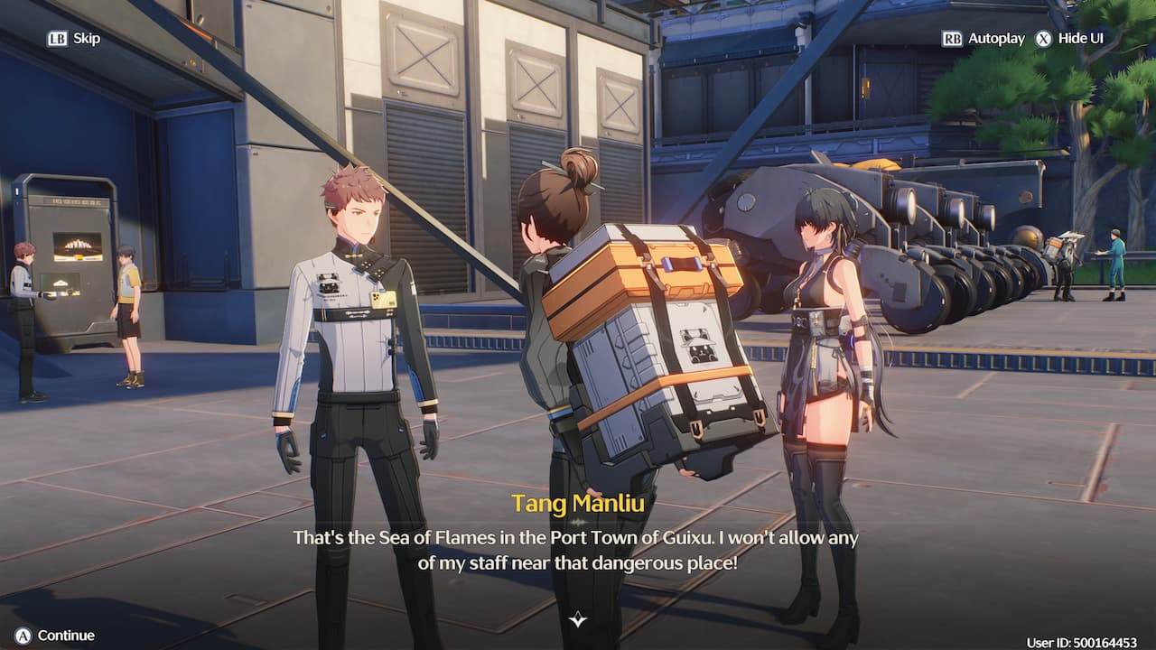 Отправляйтесь в филиал Lollo Logistics в Цзиньчжоу, расположенный всего в двух шагах от исследовательской лаборатории. Там вы встретите Тан Маньлю и Мимику — сотрудников Lollo Logistics. Они обсуждают ту самую доставку, которую отменили, и чье уведомление вы получили. Вы обнаружите, что этот пакет предназначался для места в Море Пламени. Несмотря на возражения Тан Маньлю, Мимики остается верным клятве Lollo Logistics – мы обещаем, мы выполняем – и решает отправиться туда в одиночку. Следовательно, вам придется присоединиться к ней и Тан Маньлю.