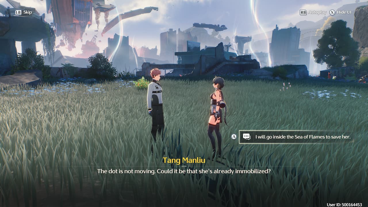 Повезло, что когда в этом путешествии вам нужно отправиться в отдаленные места, персонажи дадут вам возможность быстро добраться туда. По прибытии поговорите с Тан Манлю, который поделится информацией об опасностях Моря Пламени.