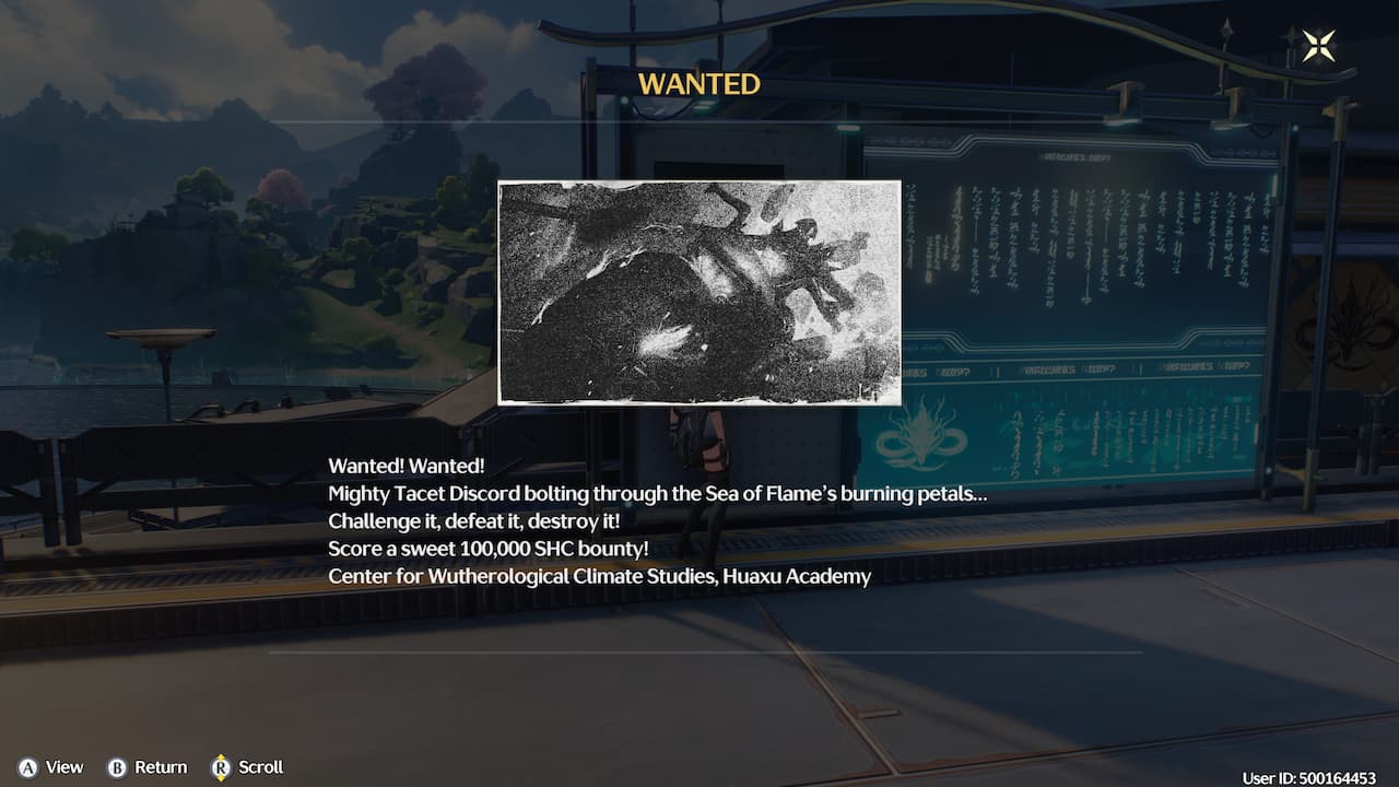 Первоначальная задача — изучить объявление о розыске, в котором указана награда в размере 100 000 SHC для любого искателя приключений, достаточно смелого, чтобы отправиться в Море Пламени и подчинить грозного врага Tacet Discord. В этом объявлении содержится четкий намек на то, что будет дальше.