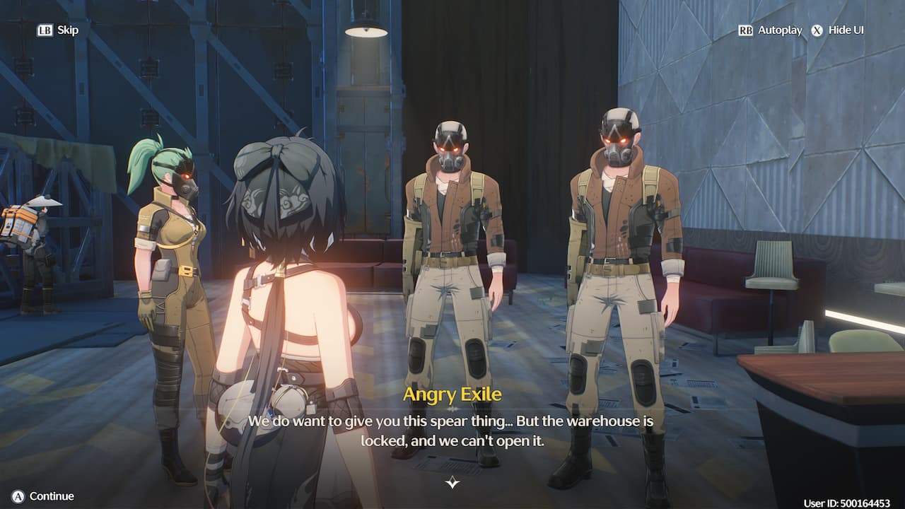 Достигнув первой исследовательской лаборатории, вы встретите группу изгнанников. Среди них есть Юни, который не даст остальным проявить враждебность по отношению к вам, несмотря на то, что у одного из них есть оскорбительное имя. Оружием, которое вы ищете, оказывается взрывающееся копье, и в этой лаборатории специально хранятся такие взрывные наконечники. Однако ссыльные не могут их выдать, так как заняты решением головоломки, которая на самом деле является испытанием или испытанием.