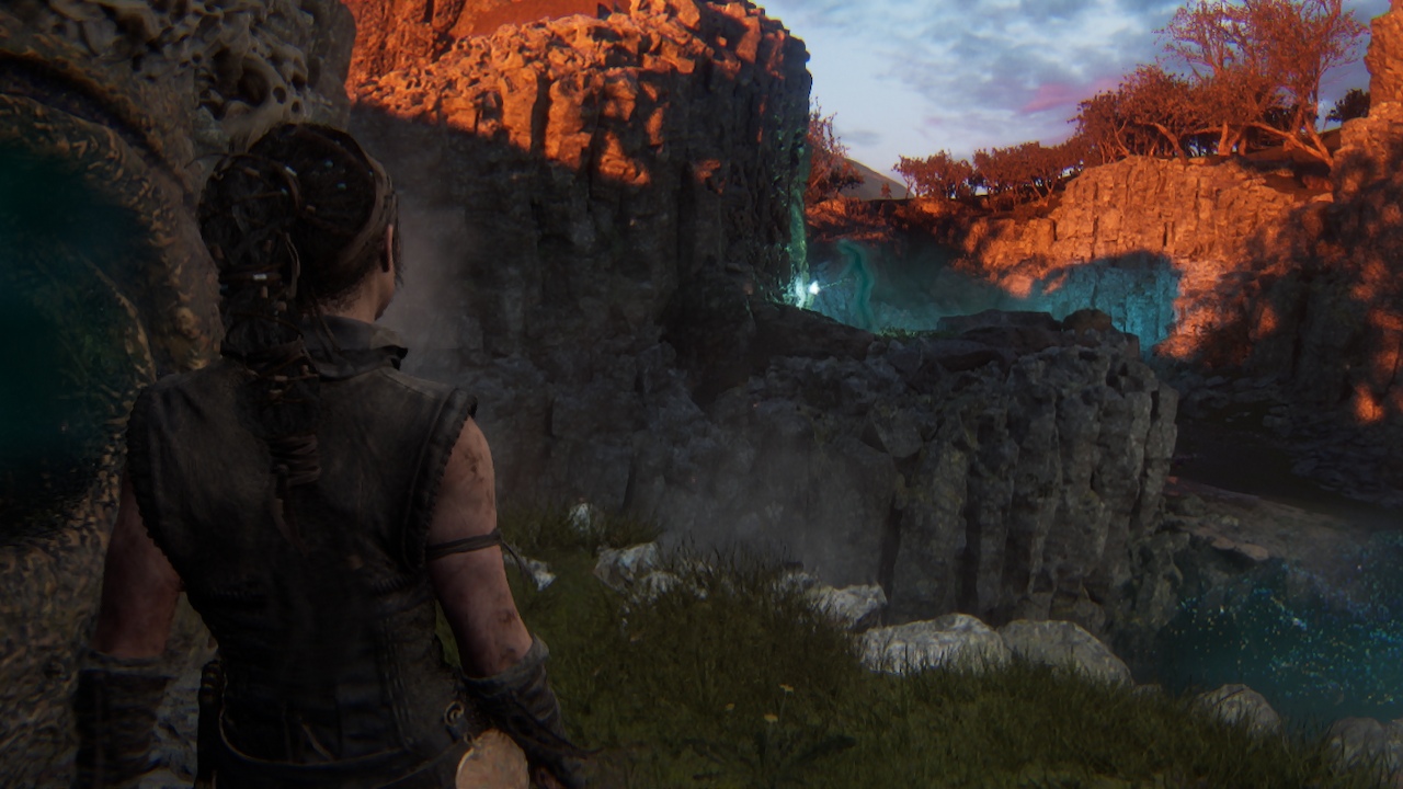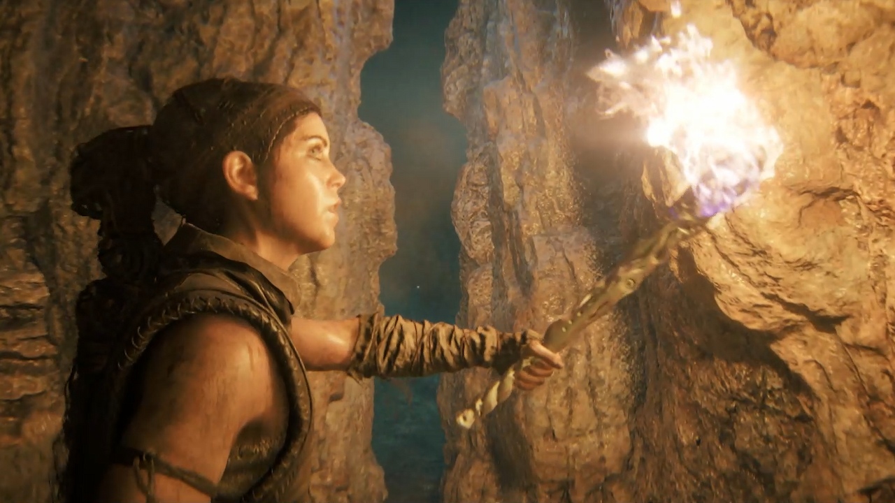 Сенуна смело прыгает в бездну, а затем плывет по воде. При следующем испытании вместо того, чтобы проходить под водопадом, который освещал бы ваш факел, найдите скрытое отверстие, ведущее к жаровне наверху. Подожгите его и возвращайтесь в основную зону.