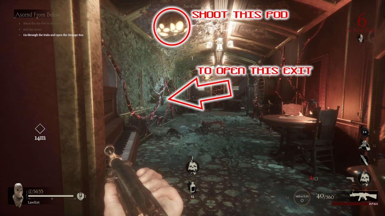 Во второй комнате в вашем распоряжении несколько пистолетов. Я настоятельно советую вам подождать здесь, пока вы не сможете получить пистолет-пулемет MP18A. Этот мощный пистолет-пулемет идеально подходит для начальных этапов игры и может быть эффективным, если вы улучшите его позже. Стреляйте по каждой появляющейся капсуле и следуйте по тропе, ведущей из канализации в поезд. Имейте в виду расположение станции боеприпасов в поезде, так как это пригодится позже.