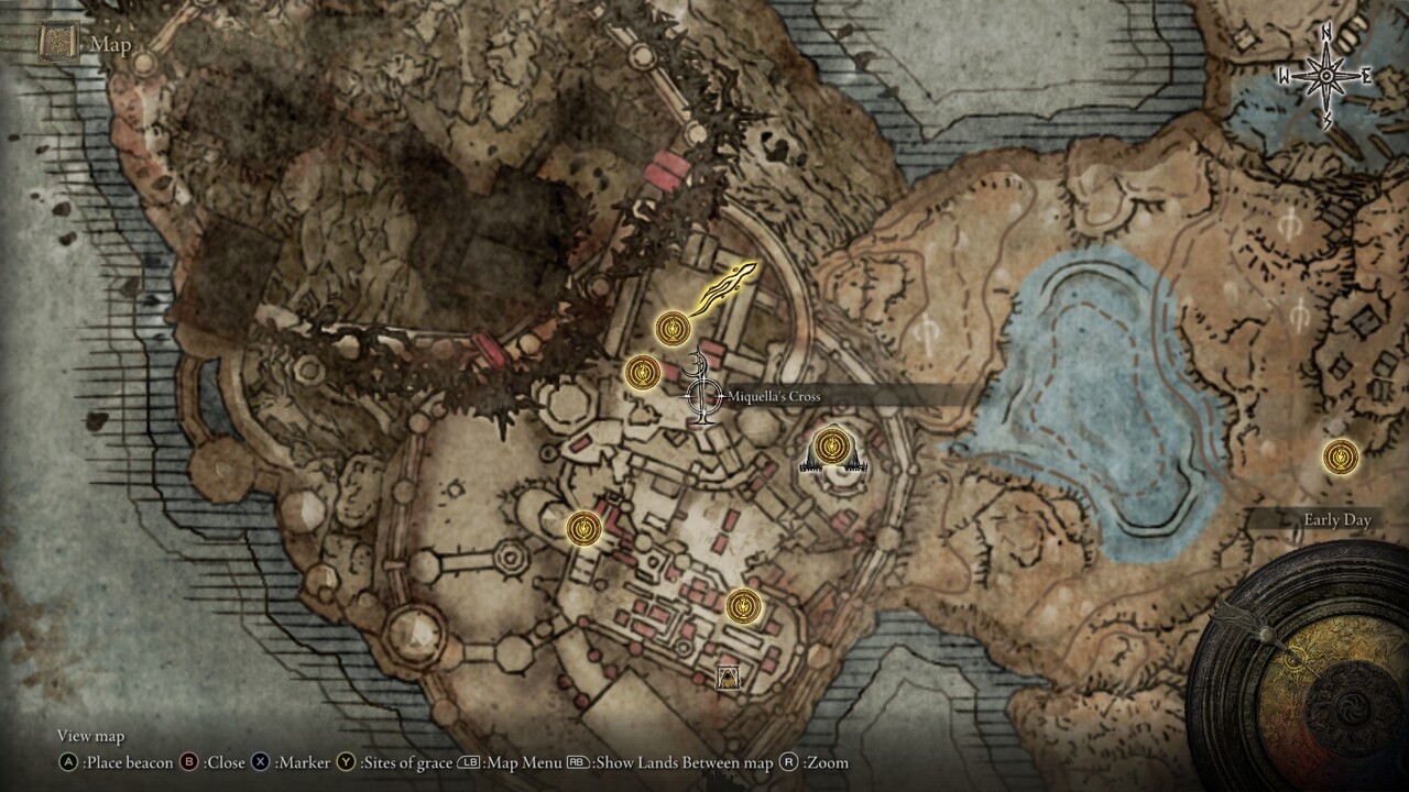 За укрепленными стенами замка Энсис находится Крест Дороги, первое Место Благодати, с которым вы столкнетесь после победы над Релланой, Лунным Рыцарем-Близнецом. Эту достопримечательность сложно не заметить.
