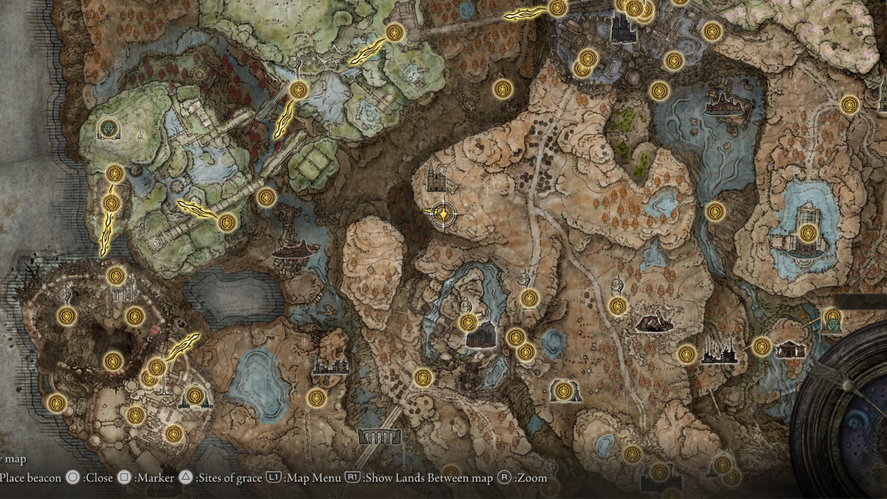 Чтобы быстро добраться до Великого Моста, Северного Места Благодати, который расположен недалеко от заброшенной и больной деревни, просто идите оттуда прямо на восток. В этом направлении вы встретите сияющие могилы, отмеченные Личиночными слезами.